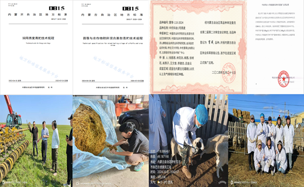 技术创新:在饲草遗传育种、栽培技术、加工利用等方面取得多项技术突破,如主持制定《苜蓿与农作物秸秆混合裹包青贮技术规程》《饲用燕麦青贮技术规程》《饲用大麦干草调制技术规程》等10项内蒙古自治区地方标准,填补了多项技术空白,为饲草标准化生产提供了重要技术支撑。